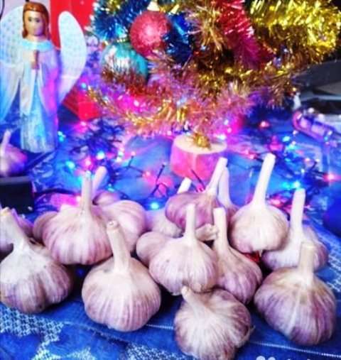 На Рождественском столе должен быть обязательно чеснок, как символ очищения от грехов, символ здоровья и плодородия, а присутствие его на праздничном столе — пожелание счастливого размножения семьи.На западной Украине зубок чеснока постоянно носили с собой взрослые и молодежь, его привязывали к руке или зашивали в рубашку ребенку. Перед тем как нести ребенка крестить, мать жевала зубец чеснока и «хукала» на него, чтобы уберечь младенца от болезней и злых духов.